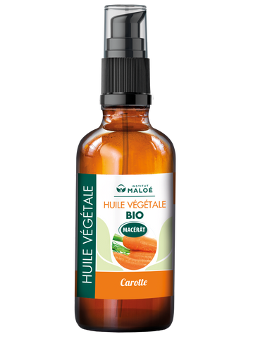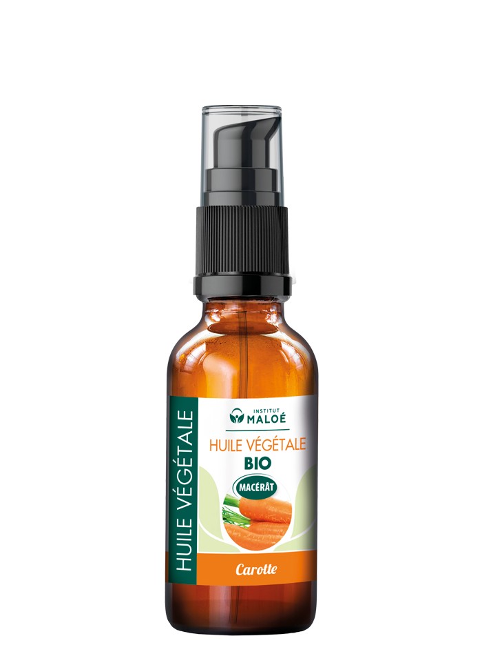 Macérât de Daucus carota bio dans l’huile de Tournesol bio. Grâce à sa teneur en provitamines A, cette huile est une alliée de votre peau. En complément alimentaire, elle permet de la préparer au soleil. En application locale, elle apporte un effet bonne mine incomparable tout en assouplissant la peau et retardant les effets du vieillissement.