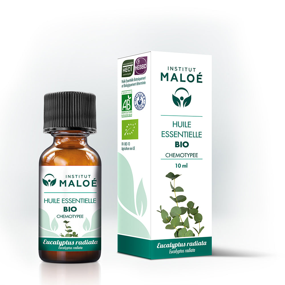 Huile essentielle obtenue à partir de la distillation des feuilles d'Eucalyptus radiata bio.