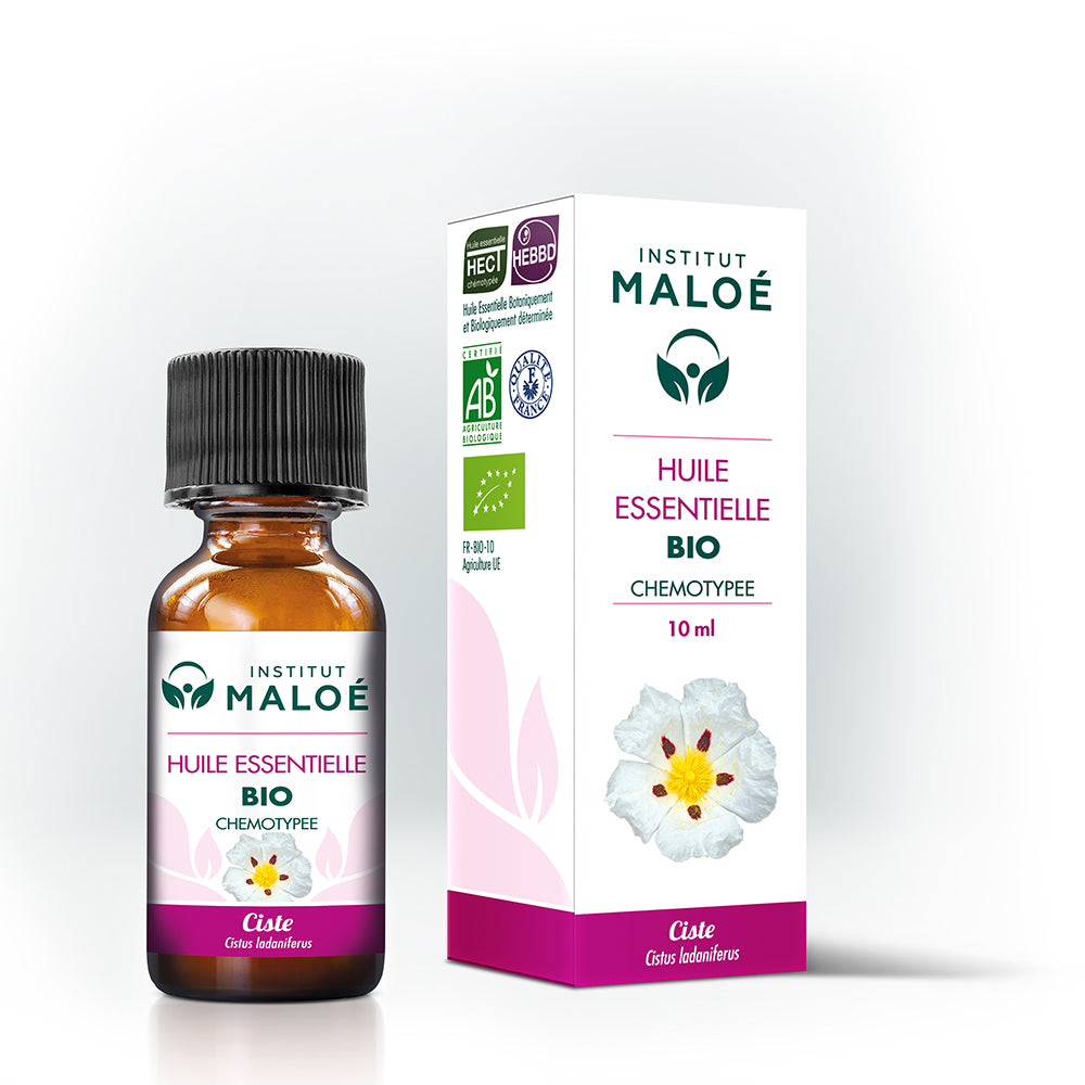 Huile essentielle obtenue à partir de la distillation des rameaux de Ciste bio.