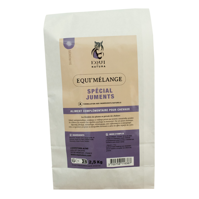Composition de plantes de premier choix, soigneusement élaborée, pour les juments qui souffrent de cycles irréguliers et douloureux. Sédatif, antispasmodique, antalgique ce mélange permet aux juments caractérielles pendant les chaleurs de retrouver leur équilibre psychique et émotionnel.