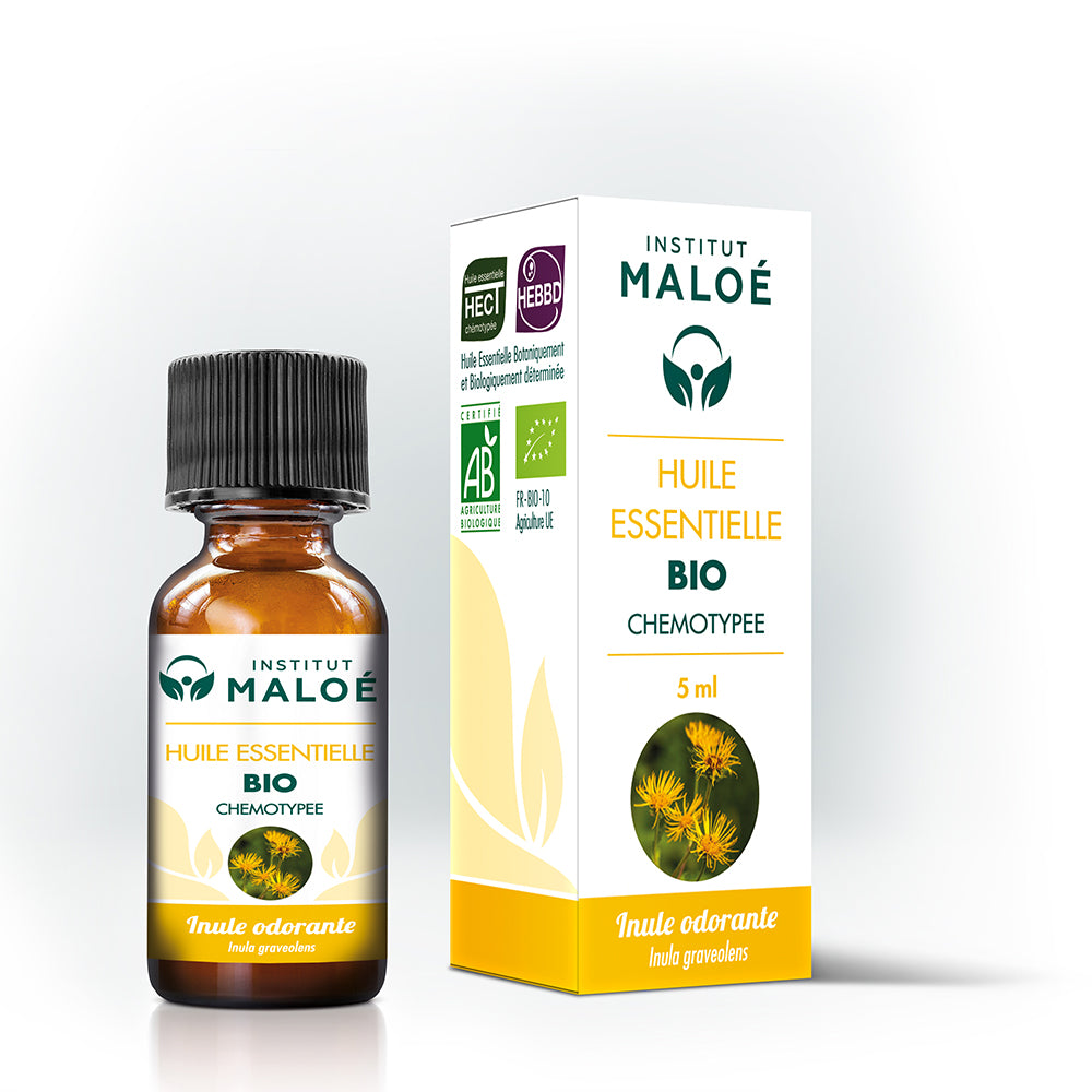 Huile essentielle obtenue à partir de la distillation des sommités fleuries d'Inule odorante bio.