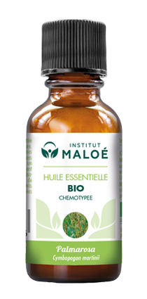 Huile essentielle obtenue à partir de la distillation des parties aériennes de Palmarosa bio.